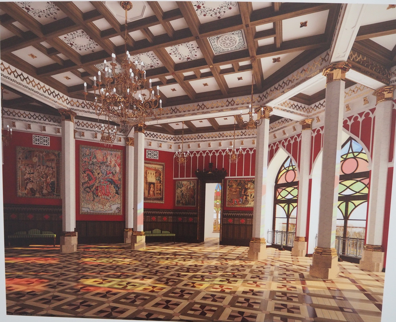 They say that there was a front hall, which was completely amazing for those times, where fish swam right under the glass floor among the algae.