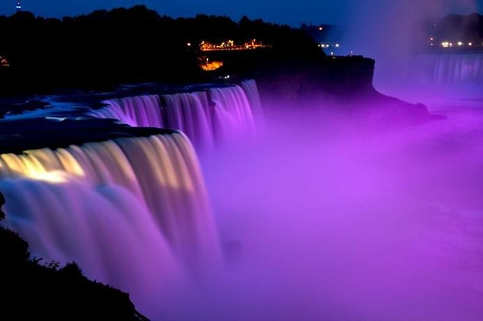 As of November 14, 2020, the "Inspired by Nature" display will become part of the regular nightly illumination of the Falls, with the five-minute lighting display playing through three times on the half hour, beginning at 7:30 each evening, with additional shows at 8:30, 9:30, 10:30, and 11:30 pm.