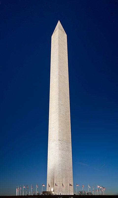 The Washington Monument is a 169-meter-tall granite obelisk clad in Maryland marble. The largest obelisk in the world and the tallest building in Washington.